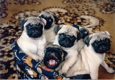 Dlouho jsme se rozhodovali, že si pořídíme pejska a nejvíce starostí nám dalo vybrat si toho správného. Měl by být vhodný do bytu, k dětem, měl by mít krátkou srst, neštěkat, přítulný a pohodový, ale také něčím zvláštní.... NO prostě i vy tušíte, že takový je jen jeden : MOPS! A tak jsme po dlouhých úvahách a hledáních v enciklopediích vyrazili v květnu 2002 do Nových Zámků a z chovatelské stanice jsme si přivezli naši vytouženou Dagmarku Jo - Kuc - Man. Všechny naše představy o novém členu rodiny byly splněny, mopsí slečna nejenže nezklamala , ale mnohdy předčila všechna naše naše očekávání... radost, radost radost... A tak je to s našmi miláčky dodnes. Ano rozrostli jsme se o dalšího člena rodiny, už není jen Dagmarka, ale i její dcera Brita Leganza, doma familiérně zvána PEPSI.Je naší výstavně úspěšnou holčičkou a jsme na ni patřičně hrdi, ale o tom zas až někdy příště.....třeba u nás doma!