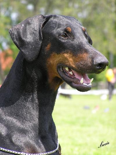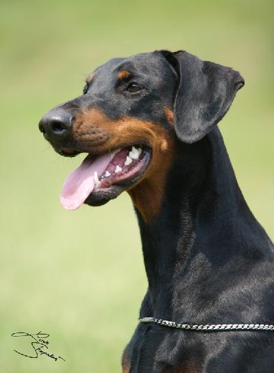 O plemeni:Dobrmani jsou velmi inteligentní, učenliví a aktivní psi. Hodí se ke sportovně založeným majitelům, kterým dělají jen samou radost. Naši dobrmani jsou nejenom aktivní ve služební kynologii, ale i na mezinárodních výstavách. Jsou také zároveň oddaní a přátelští společnicí ke svojí rodině, kterou bezmezně milují celým svým srdcem. V případě zájmu o toto plemeno nás kontaktujte.