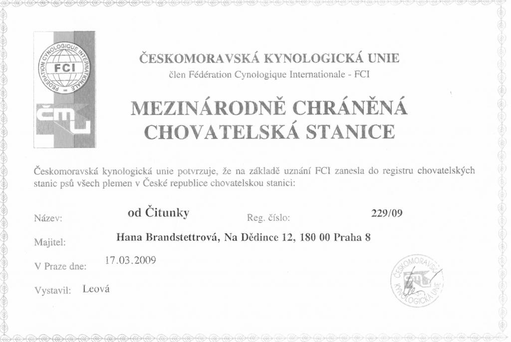 Adresa: Zátiší 187 Lišany 270 52 Telefon: +420603520970 Zodpovědná osoba: Hana Brandstettrová www: www.odcitunky.estranky.cz Mail: | Reg. číslo CHS: 229/09 Certifikát CHS: Zobrazit Certifikát ::: Plánujeme vrh: 01.01.1970 Hodnocení: 74 bodů ze 100 |