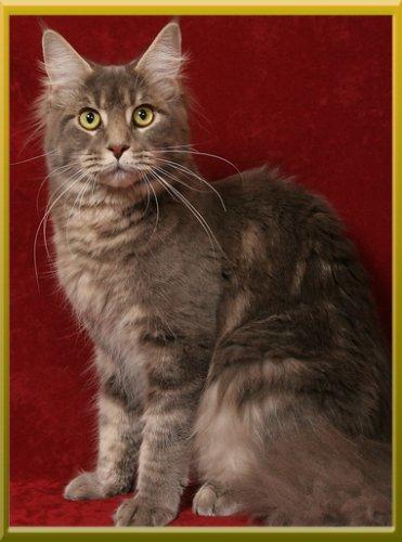 O plemeni:Mainská mývalí kočka je americké lesní kočka, která do Čech byla přivezena v roce 1989. Je to přírodní plemeno, které dokáže být přitulné a láskyplné. Patří k nejoblíbenějším plemenům čistokrevných koček na světě. Umí být hravým a inteligetním domácím mazlíkem i v dospělosti.