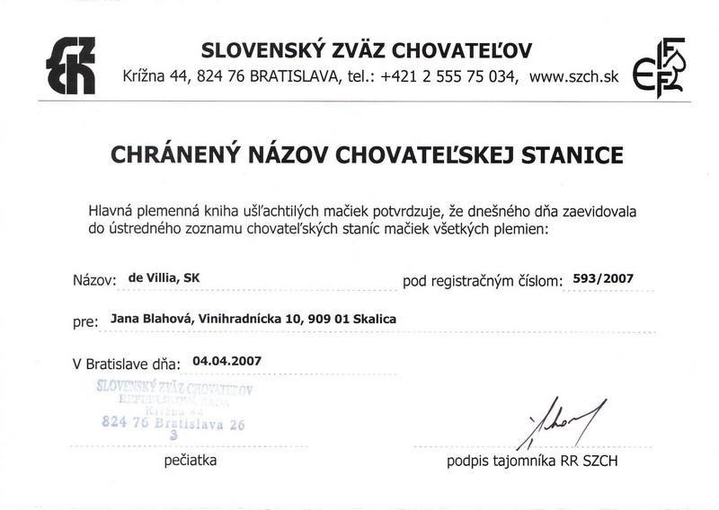 Chovatelská stanice: DE VILLIA, SK