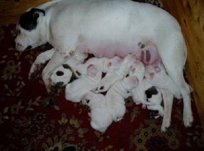V 17. a 18. století,kdy se stěhovali angličtí emigranti do Severní a Jižní Ameriky ,si brali s sebou své rodiny i psy. Termín Bulldog byl použit v roce 1631 pro psy , kteří byli používáni pro lov kanců a Tito psi byli ochotni položit svůj život k ochraně svého pána.Emigranti,kteří se stali farmáři získali jeden základní znak –jejich zvířata tu byla určena pro lidi a ne naopak. Veškerý dobytek ,pokud nebyl schopen přežít ve svém prostředí tak zemřel .Od psů se očekávalo, že budou pracovat ,hlídat dům lovit se svými pány a dost často vyžít jenom z odpadků.Pokud byl pes dost hloupý ,aby se nechal zranit,či jeho kondice se zhoršila , onemocněl a prostě zemřel .Pouze ti silní ,rychlí a zdraví přežili a dále produkovali psa, kterého máme dnes .Díky tomu se dožívají tito psi až 16 let. Tito psi jsou nejlepšími společníky rodiny a zároveň výborní hlídači jaké vůbec můžeme dostat.